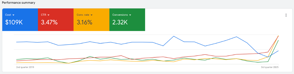 In June 2025, we took over a client’s long-running Google Search Ads campaign that