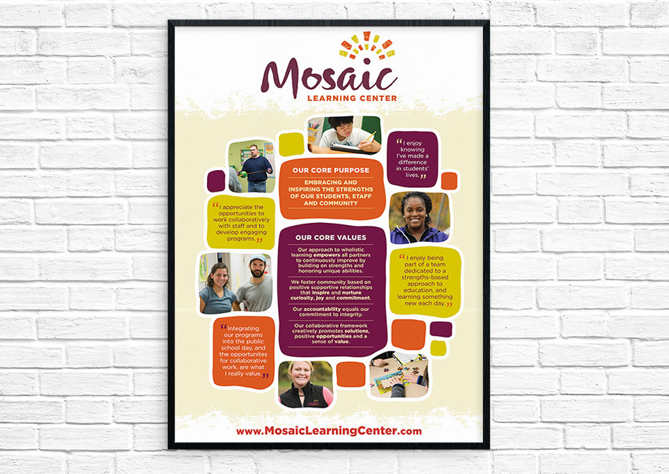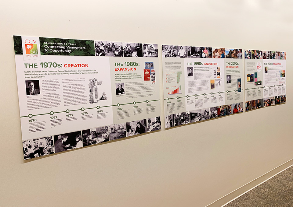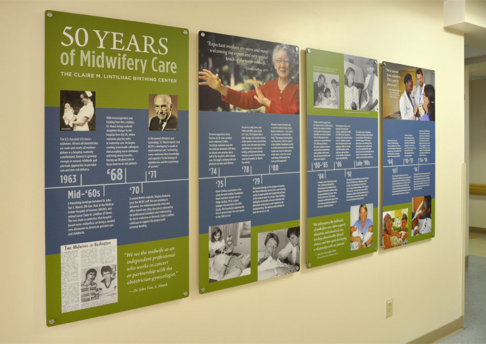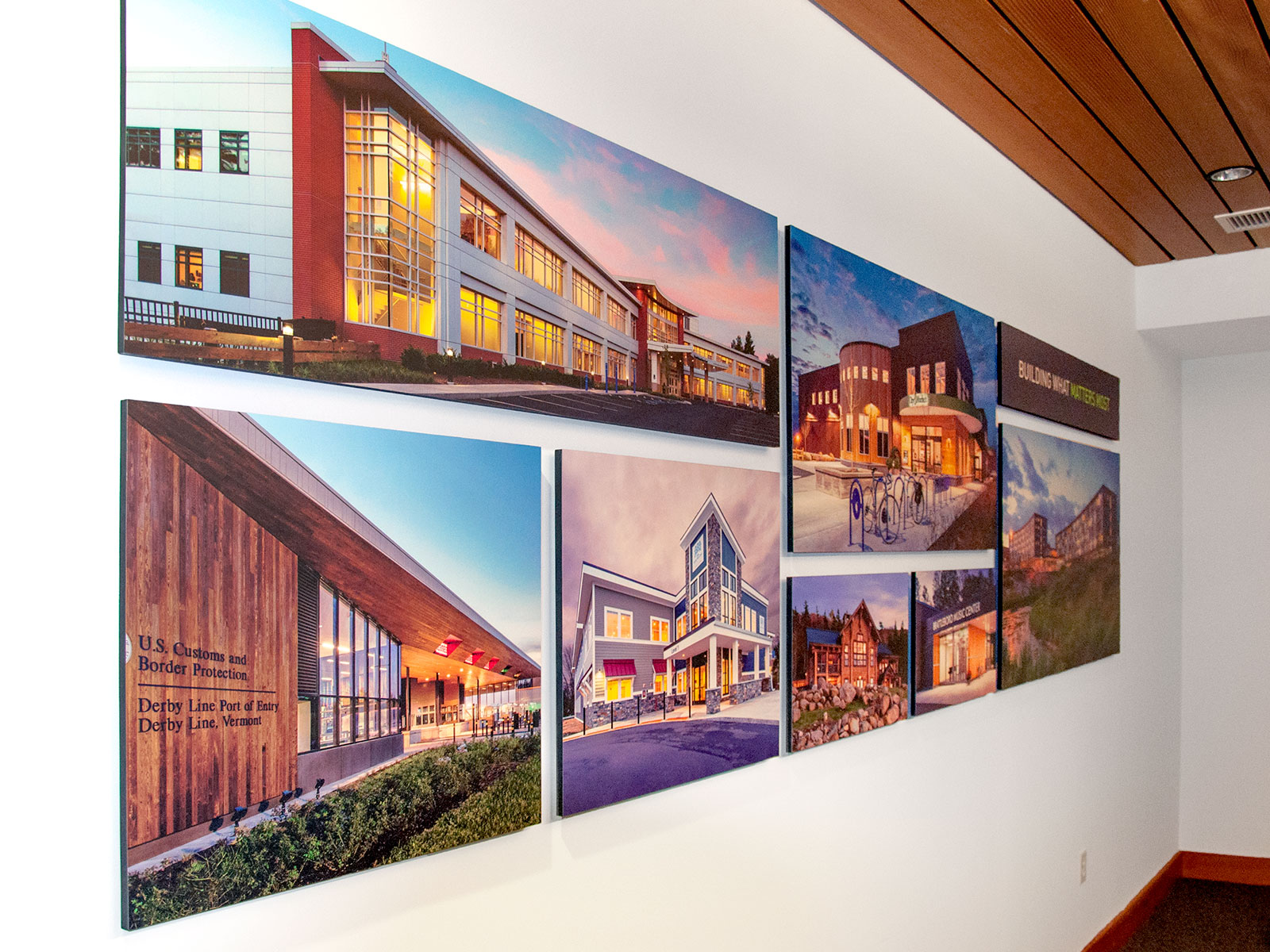 Bring your brand inside! Environmental design, or interior branding, can enliven your space, lift your credibility, and inspire everyone who walks through your door. We work closely with our clients to add branding, messaging, and graphic design to their spaces in a variety of forms such as wall murals, custom metal signage, large-scale messaging, designs on glass, graphic displays, framed prints, and photo collages.