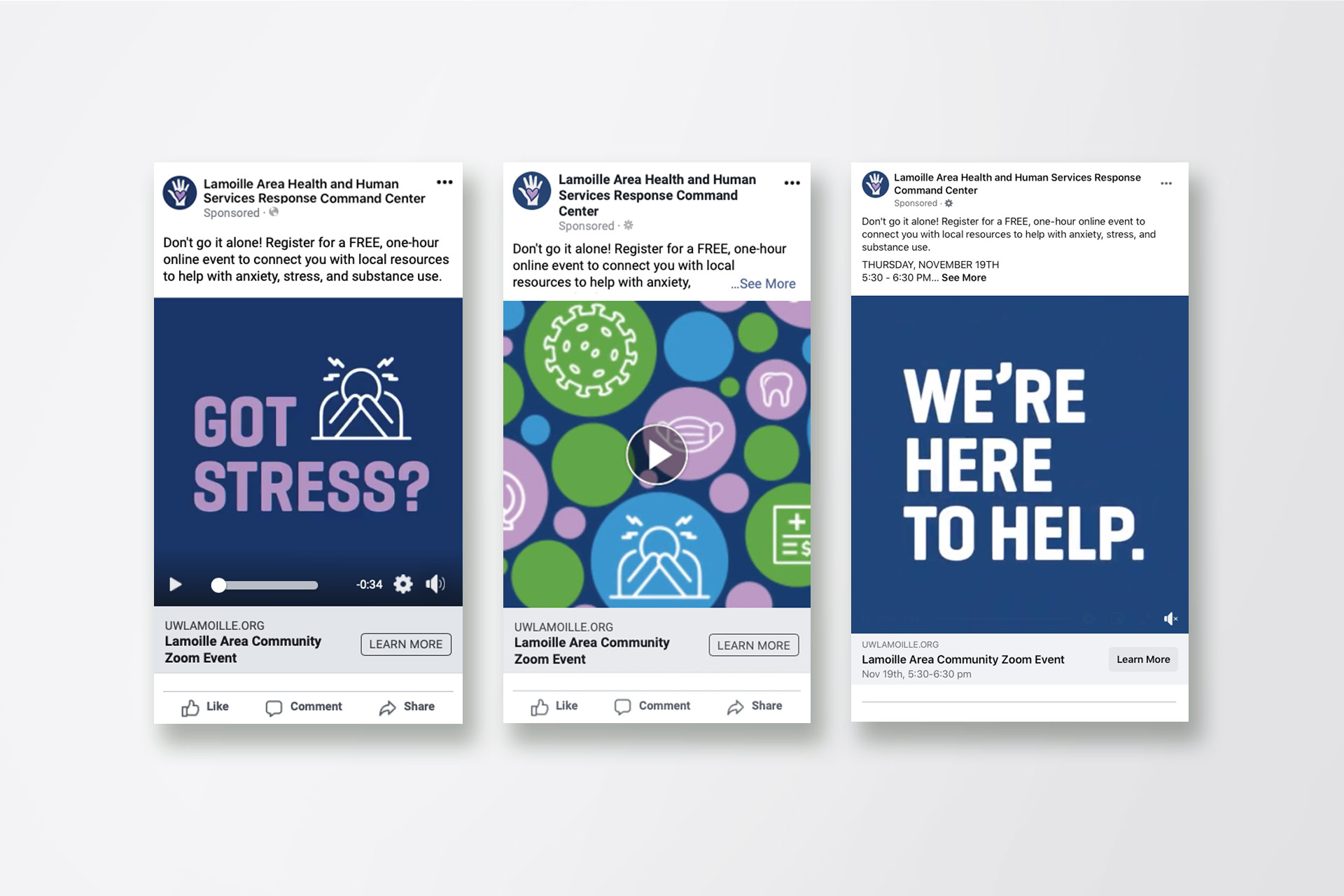 As COVID hit vulnerable communities hard, Capstone’s Lamoille Area community responded. Its local command center developed a series of free resources to connect people with the help they needed. Our campaign included a series of social media ads, some with simple short-form video, to get people connected.